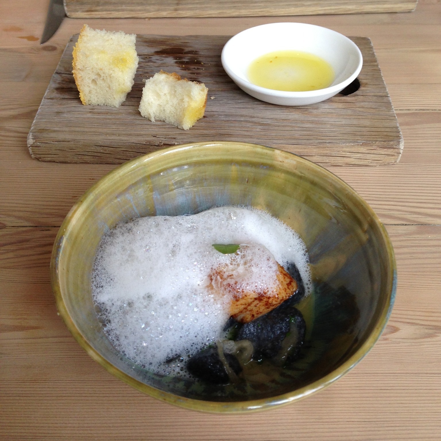 I read about this wonderful Gastropub on the edge of Richmond Park in a tweet by Andy Hayler last week. Today we decided to go for a spontaneous Sunday lunch and it was definitely a good idea! Everything on the menu looked fantastic and many dishes had recommended matching wines, which is always nice! We finally decided on the Parsnip soup with coconut and lime foams and the Orkney scallop with squid ink dumplings and Insolia veloute, which were both served in bowls on wooden boards and were very tasty! For the main course we both had the Longhorn beef, which was served on a sharing plate in the centre of the table and came with some wonderful side dishes: potato and pancetta pithivier, Grelot onions, salt roast beetroot with toasted hazelnuts and miso(!) horseradish. We chose the matching wines for both courses which were Bacchus and Chablis with the starters and Azamor, a Portuguese Syrah-Merlot blend with the beef. After spotting Pedro Ximenez sherry as the matching wine for the Chocolate and praline bar with miso salted ice cream, we couldn’t resist having dessert as well…and it was pouring rain so we needed an excuse to wait it out! We also tried the Pandan creme brulee with a peanut butter cookie with a glass of Late Harvest Torrontes. All in all it was probably the best Sunday lunch I’ve ever had. Definitely somewhere to go back to.